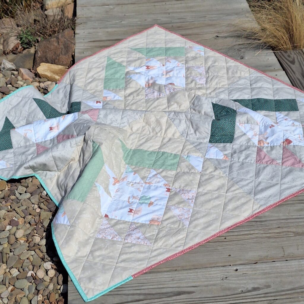 This quilt is a playful twist on my original Bear Paw quilt pattern, combining pastel fabrics with a spring-inspired design. If you’ve been looking for a quick quilt finish, this project is perfect for both beginners and experienced quilters alike.