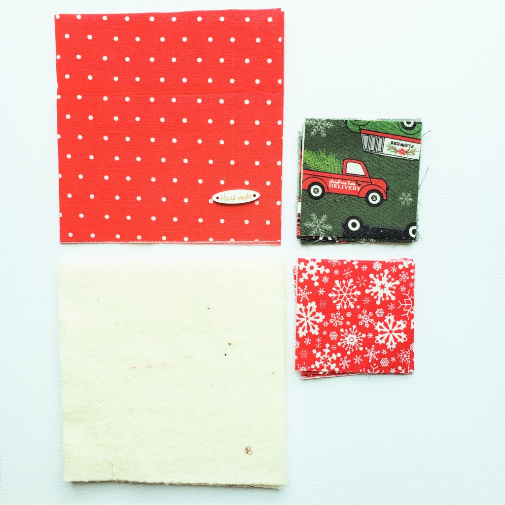• Four 2 1/2 inch fabric squares (scraps work perfectly!) – 3 red and 1 white for this Valentine heart tutorial
