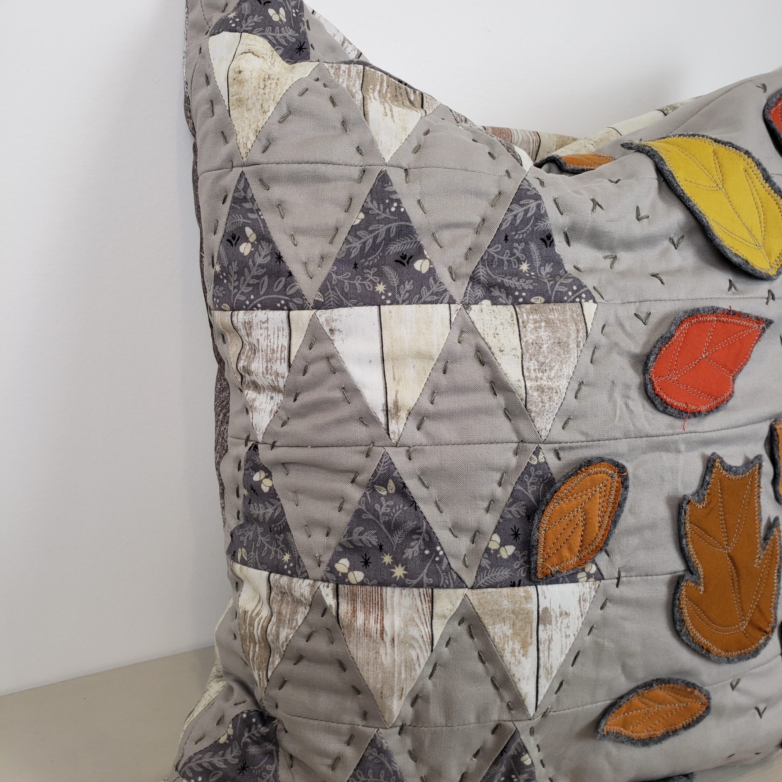 Create stunning diamond rows and organic floral appliqué with a twist! This design is fun for pattern play and is perfect to highlight hand stitching. With simple instructions, this modern quilted pillow cover pattern includes detailed instructions, appliqué templates, and a coloring page to spark your designs. This downloadable PDF pattern guides you through the creation of your own unique modern pillow or wall hanging, measuring 18 x 18” (45-cm square).