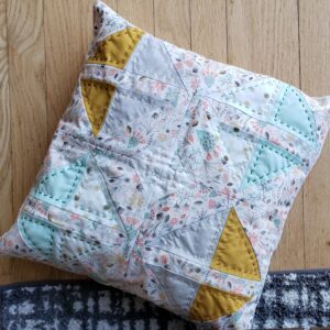 Create stunning diamond rows and organic floral appliqué with a twist! This design is fun for pattern play and is perfect to highlight hand stitching. With simple instructions, this modern quilted pillow cover pattern includes detailed instructions, appliqué templates, and a coloring page to spark your designs. This downloadable PDF pattern guides you through the creation of your own unique modern pillow or wall hanging, measuring 18 x 18” (45-cm square).
