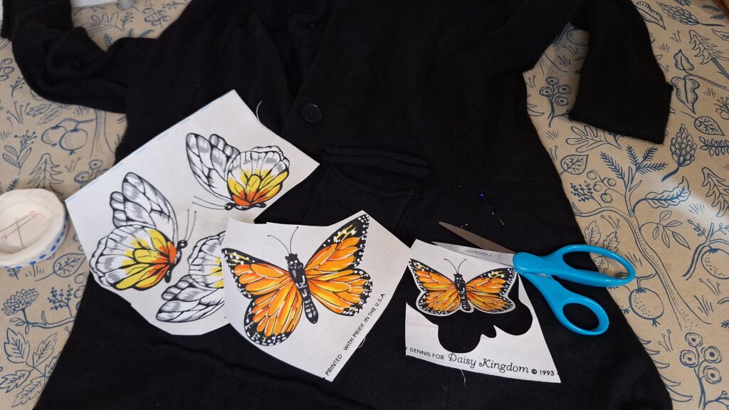 These butterfly patches from 1993 bring such a unique flair to this project. Instead of hiding the damage, we’re turning it into a feature! That’s the beauty of visible mending—it celebrates imperfections while adding personality.