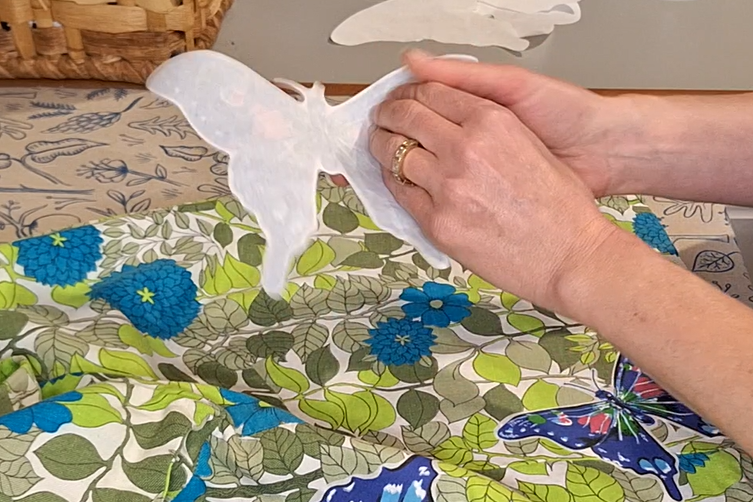 - Press into place with a hot iron following manufacturer’s instructions – I like Heat ‘n Bond, but any double-sided fabric adhesive should work.